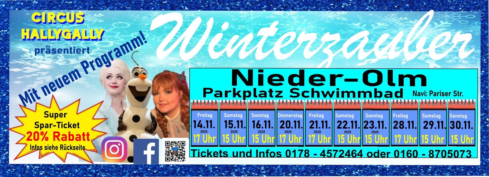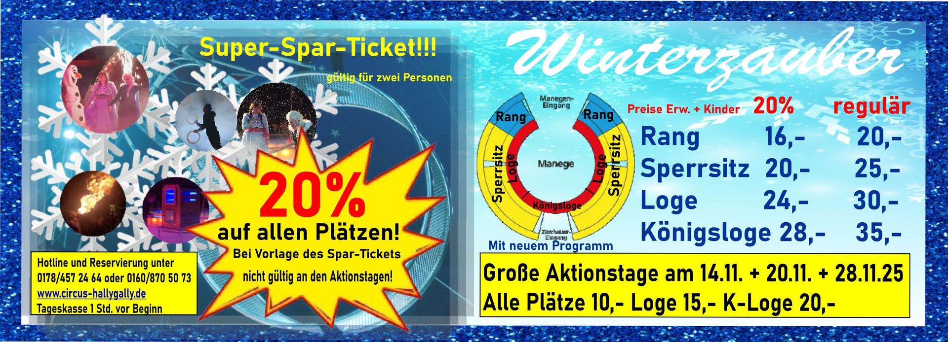 Erleben Sie eine wundervolle Show voller Magie und Poesie, spektakulärer Artistik und Comedy in einer Manege voller Schnee! Anna und Elsa sowie Christoph und Sven lassen Kinderaugen leuchten! Einfach das Spar-Ticket an der Kasse vorzeigen, dann gelten die Rabatt-Preise! Tickets gibt es an der Tageskasse, unter 0178-457 24 64, per WhatsApp oder unter unserem Kontakt-Formular!